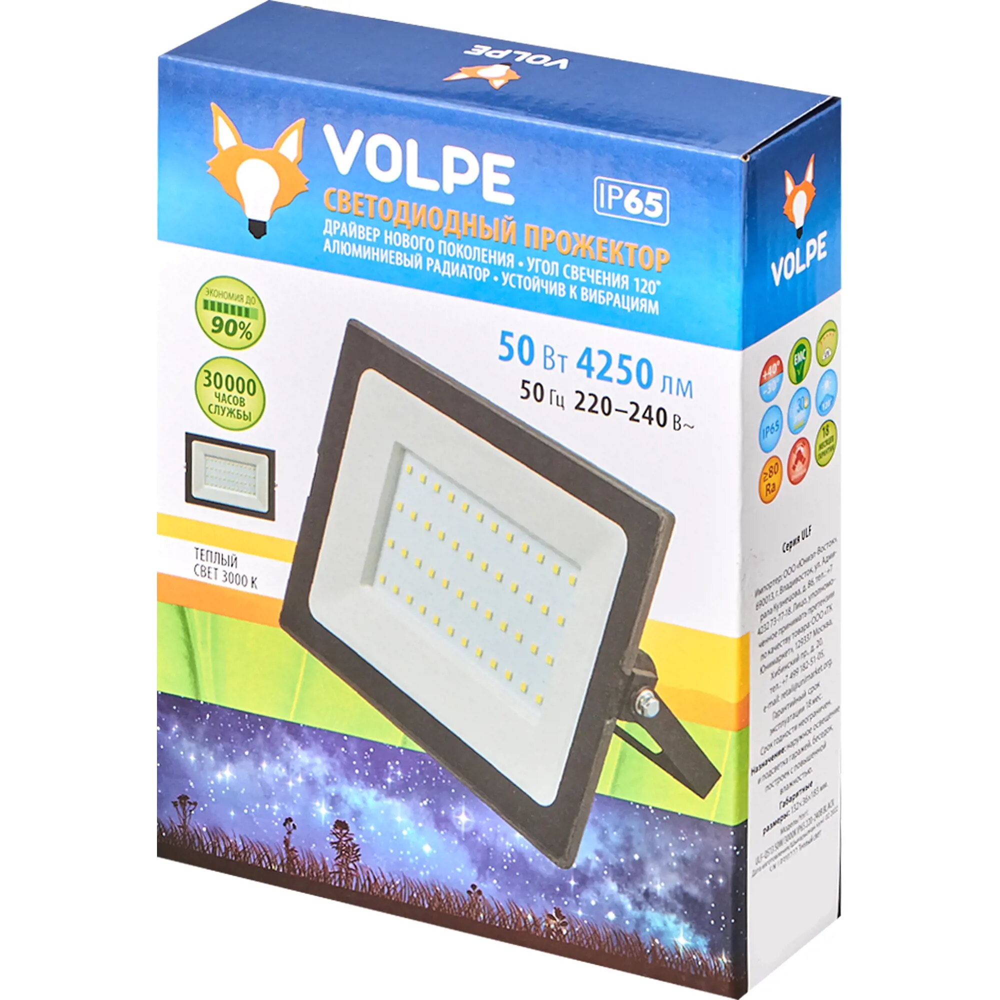 Сохранитьпрожектор Белый теплый 50W UL-00005802 ULF-Q513 50W/3000K IP65 220-240В BLACK Volpe интересное: