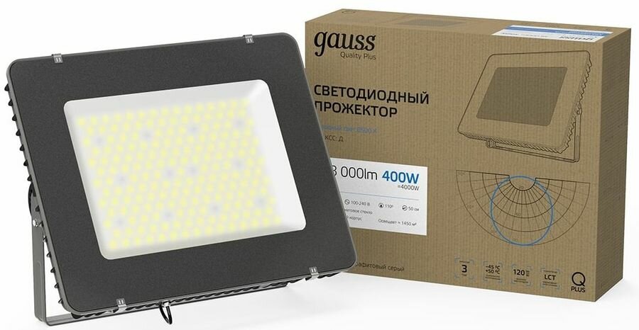 Gauss Прожектор Qplus 400W 48000lm 6500K 175-265V IP65 графитовый линзованный 40° LED 690511400L