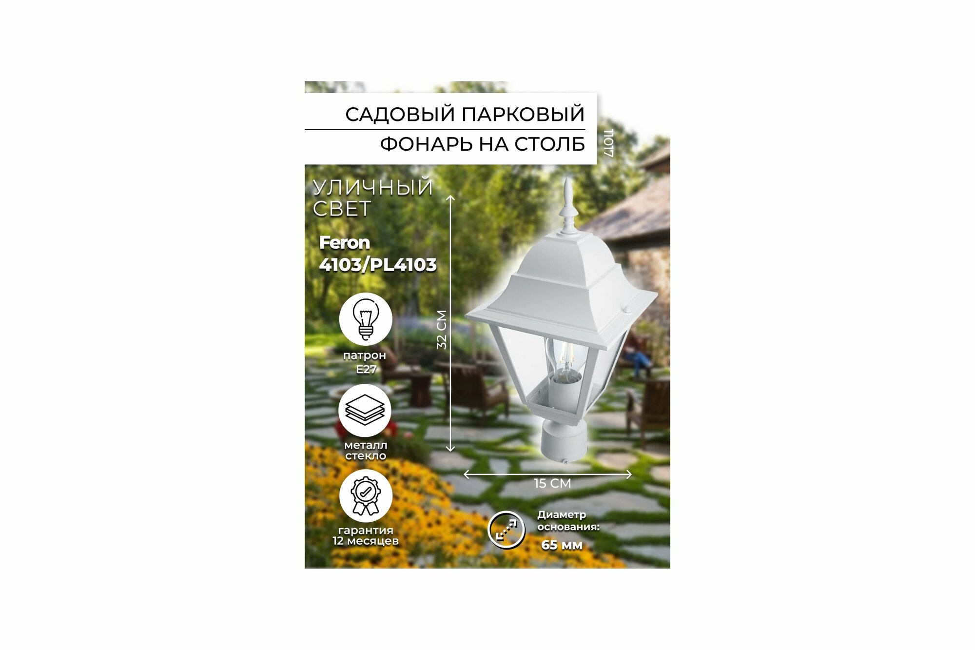 Светильник садово-парковый 4103/PL4103 четырехгранный на столб 60W E27 230V, белый, FERON 11017 (1 шт.)