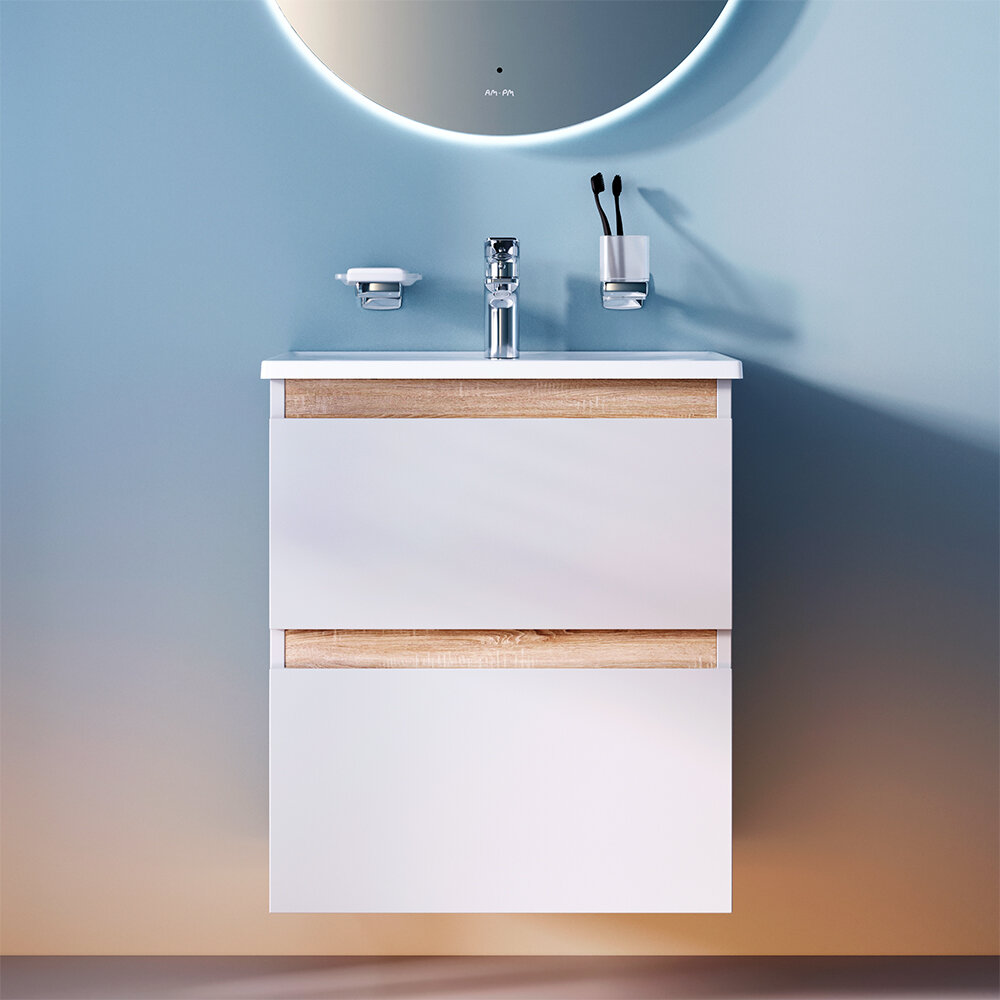 Тумба под раковину AM.PM X-Joy M85AFHX0652WG подвесная, 65 см, 2 ящика, белый глянец