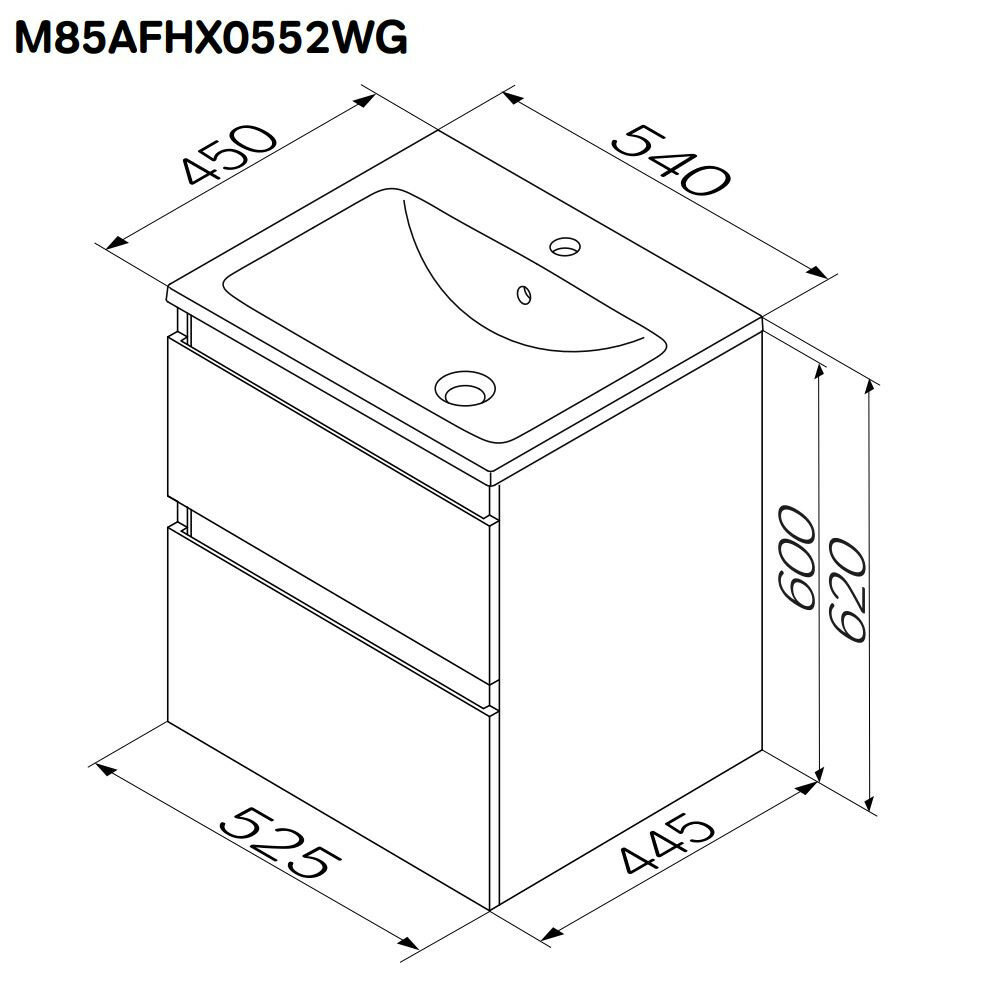 M85AFHX0552WG X-Joy, База под раковину, подвесная, 55 см, 2 ящика, белый глянец