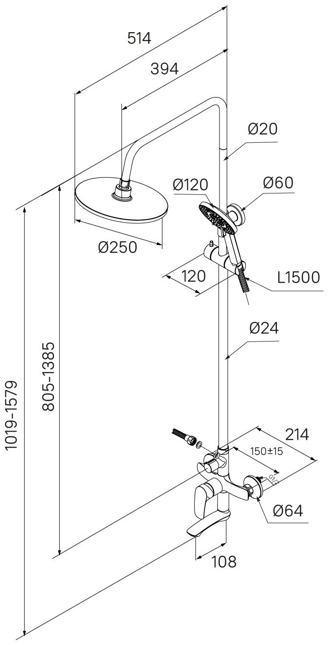 СохранитьДушевая система Milardo Rora с верхним душем d250 мм с лейкой d120 мм со смесителем (RORWT4FM06) интересное: