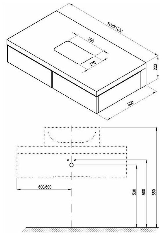 Тумба под умывальник RAVAK Formy (1200х550х220) 2 ящика, белая X000001031