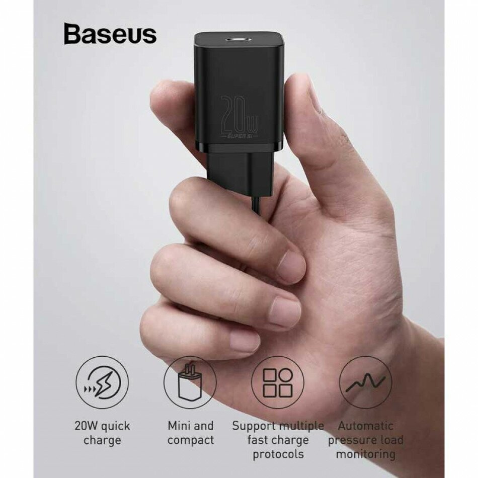 Сетевое зарядное устройство Baseus Super Si 20W USB-C + кабель, быстрая зарядка (TZCCSUP-B01) черный