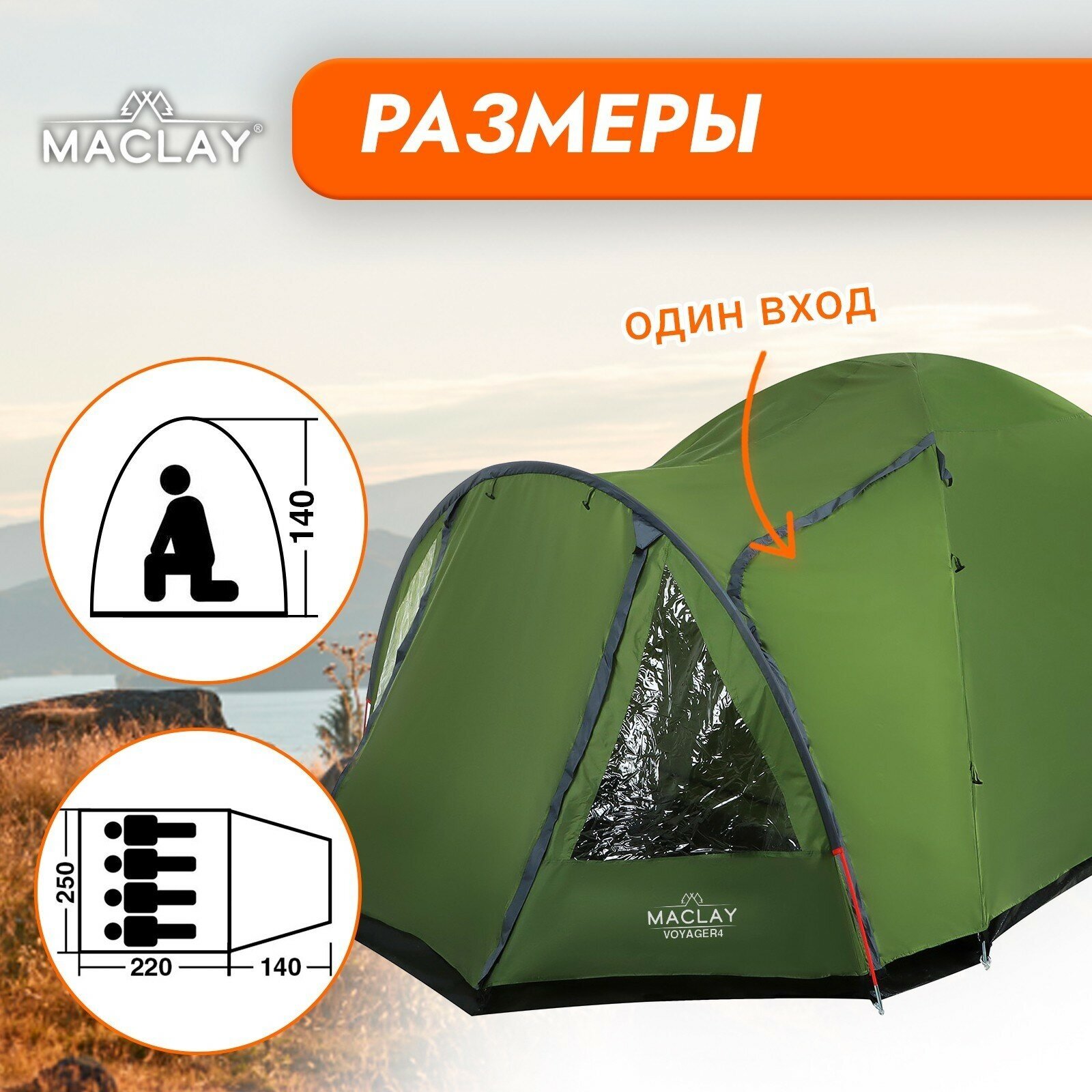 Maclay Палатка туристическая, трекинговая maclay VOYAGER 4, 4-местная, с тамбуром
