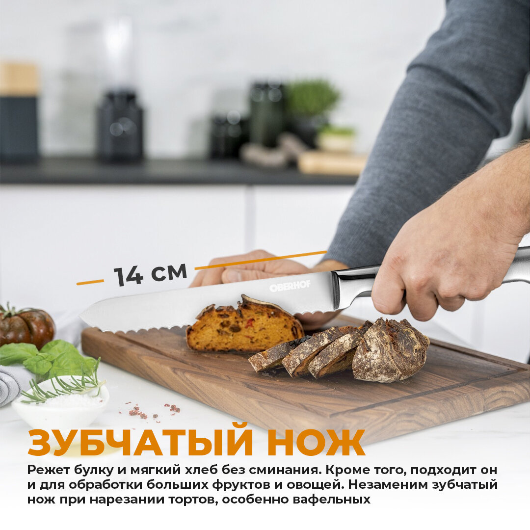 Набор кухонных ножей Oberhof Schneidkante S-17/ножницы с подставкой и встроенной точилкой/14шт/для стейка, поварской, сантоку, универсальный интересное: