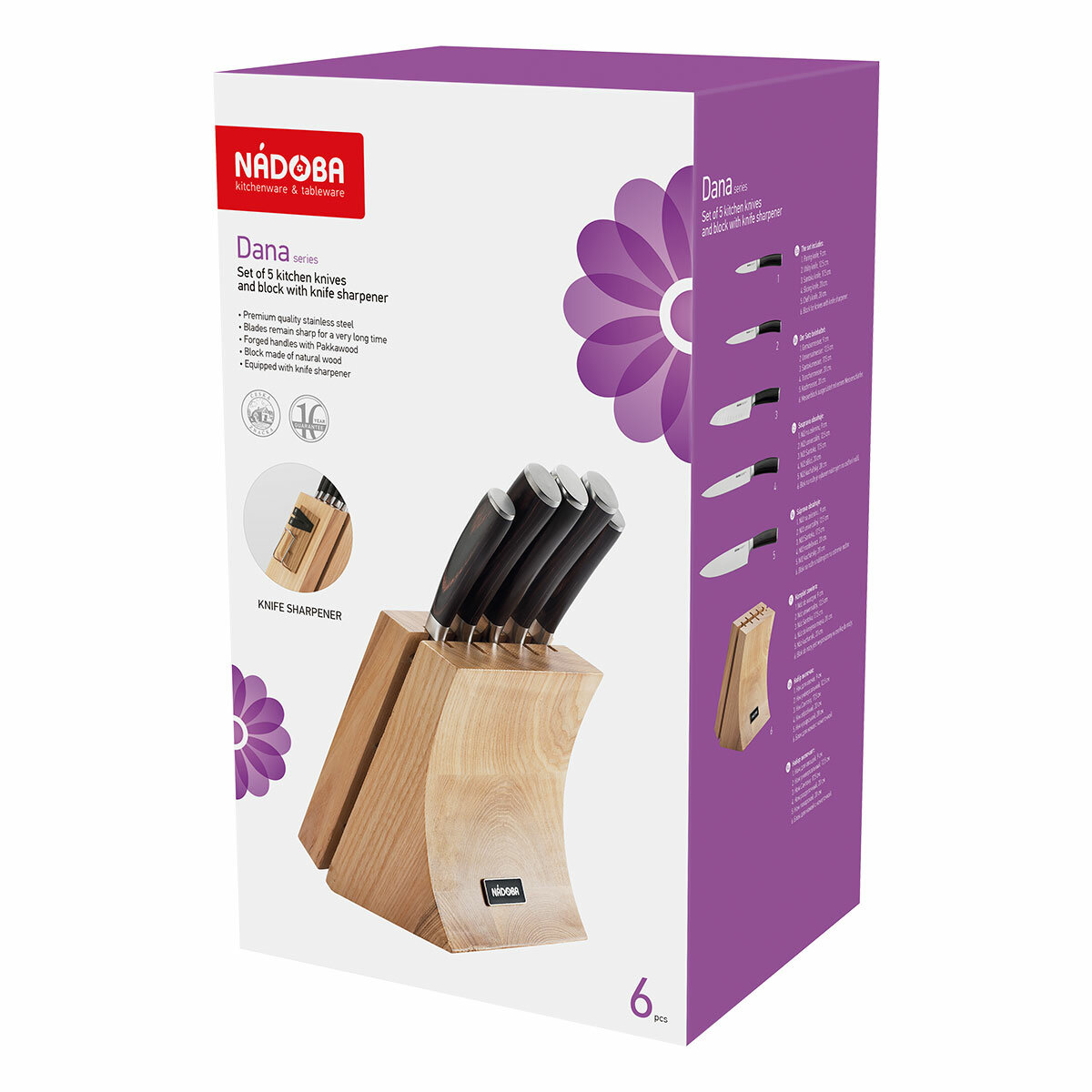Набор из 5 кухонных ножей и блока для ножей с ножеточкой Nadoba Dana (фм) .
