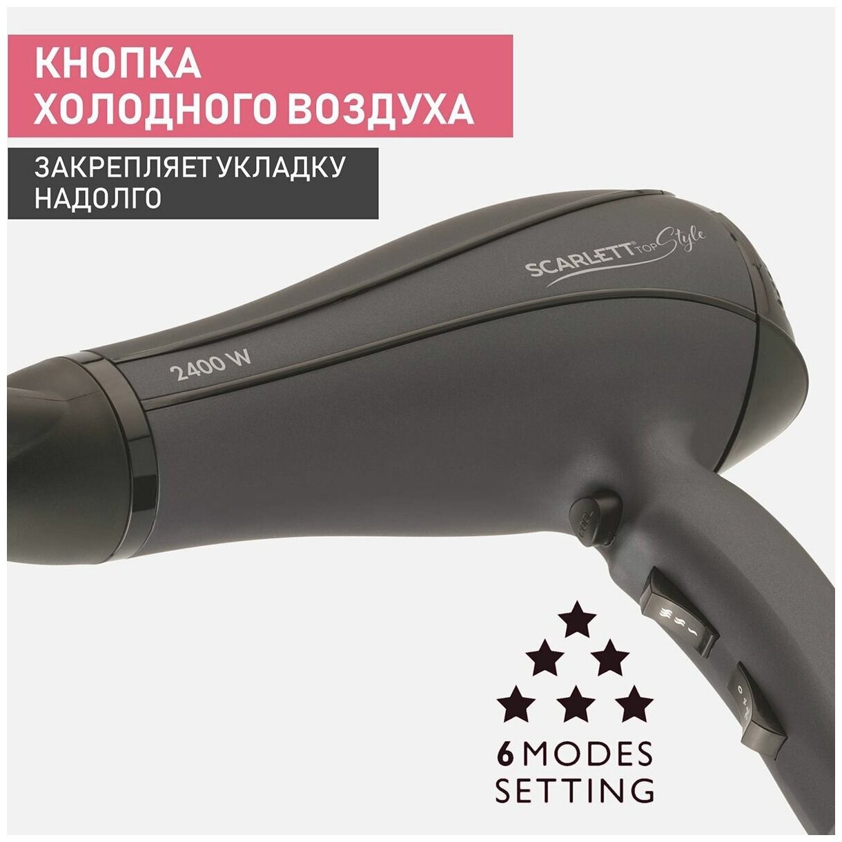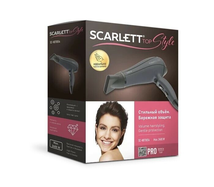 Фен Scarlett SC-HD70I54, 2400Вт, серый и черный интересное: