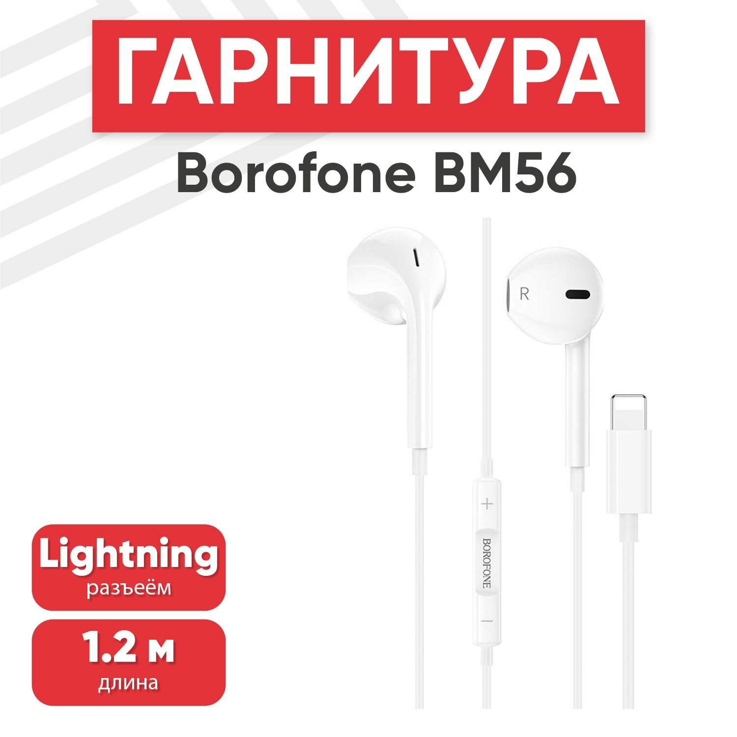 Гарнитура BOROFONE BM56 Original Series Lightning 8-pin, вкладыши, 1.2м (20 шт.) (белый)
