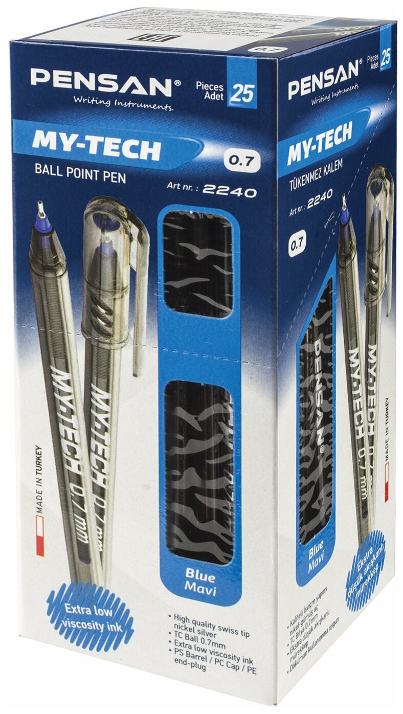 Ручка шариковая Pensan My-Tech (0.7мм, синяя, игольчатый стержень, масляная) (2240/25), 25шт.
