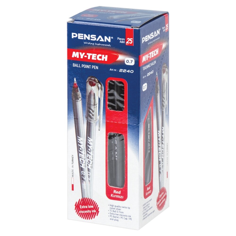Ручка шариковая масляная PENSAN "My-Tech", красная, игольчатый узел 0,7 мм, линия письма 0,35 мм, 2240/25 Комплект - 25 шт .