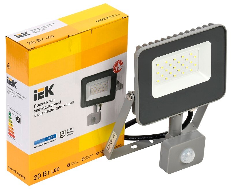 Прожектор IEK СДО 07-20Д 20W 6500К 1800Лм светодиодный с датчиком движения IP54 серый