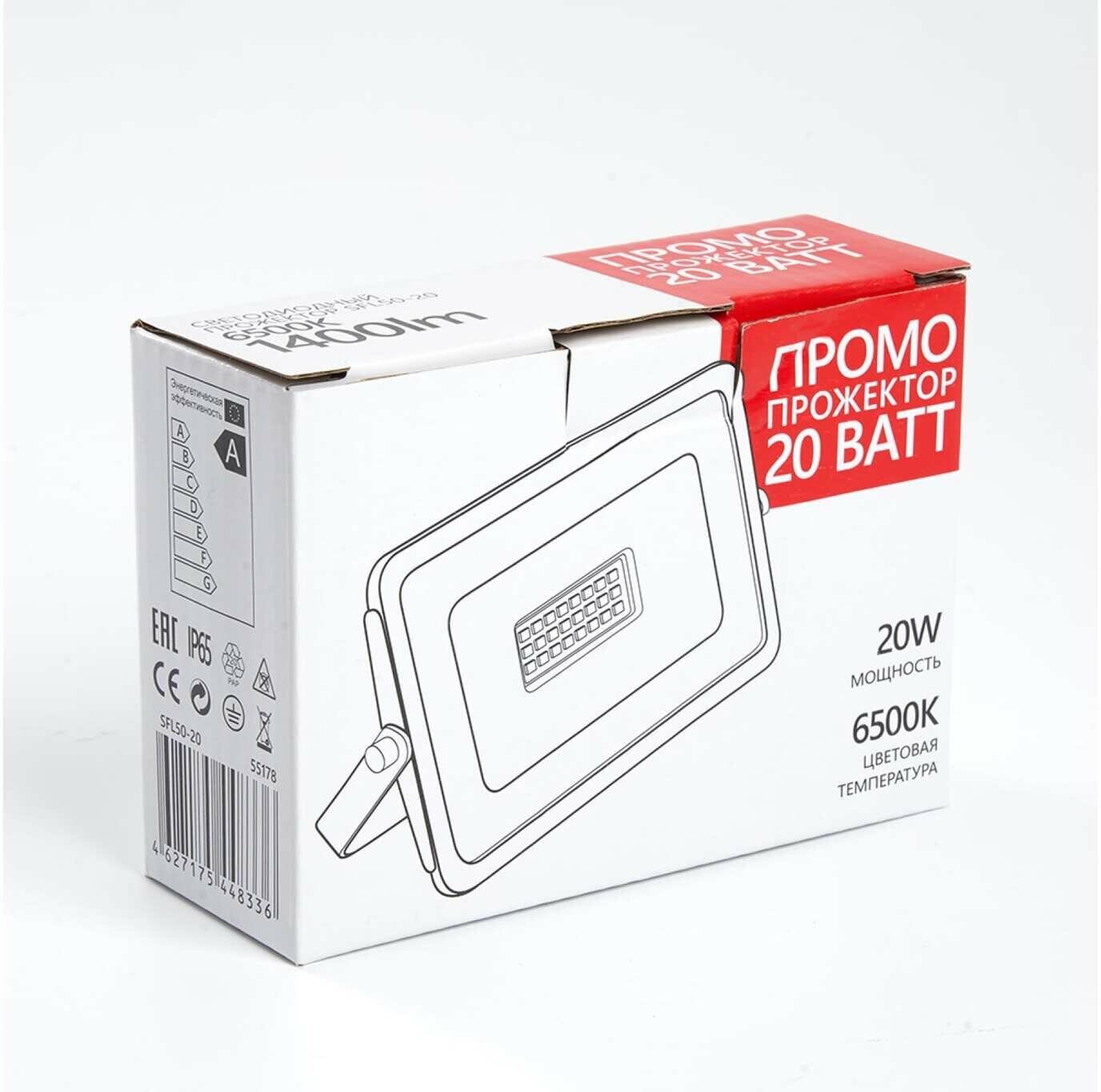 Прожектор светодиодный 20W 6400K IP65 черный SFL50-20 промо