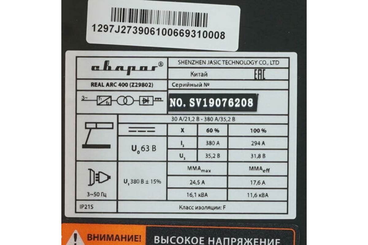 | Макс. сварочный ток при непрерывной работе | 294 А |