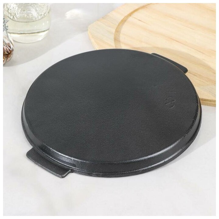 Сковорода чугунная «Круг. Гриль», 26,7×23,5 см, с ручками, на деревянной подставке