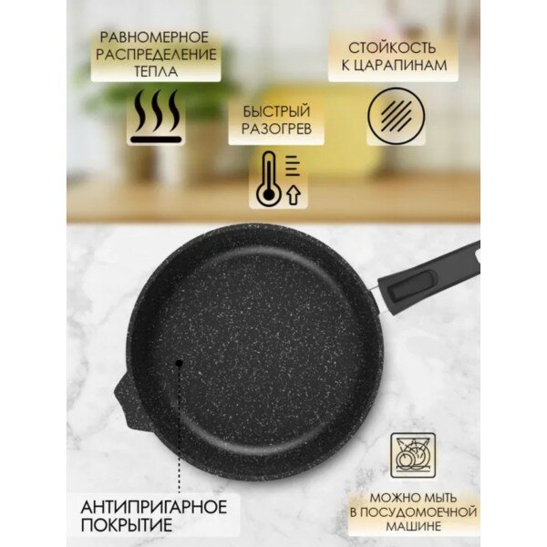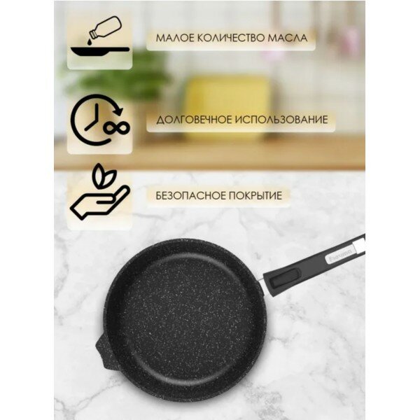 Сковорода Мечта "Гранит" 22 см, съемная ручка, антипригарное покрытие, черная