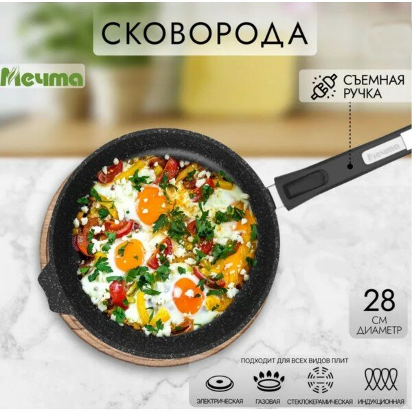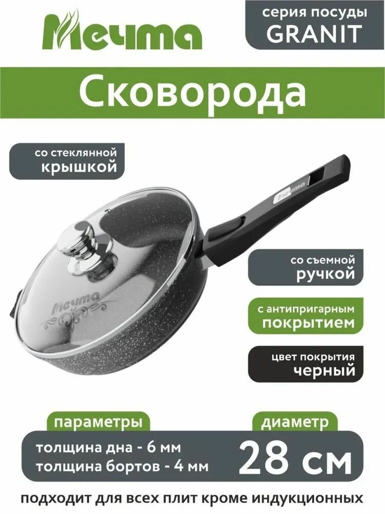 Сковорода Мечта 28 см Гранит с антипригарным покрытием со съемной ручкой, индукционная