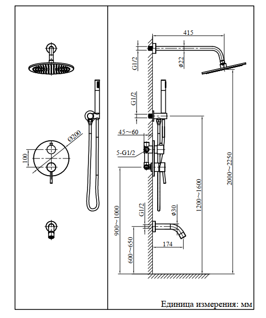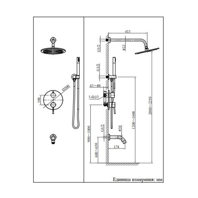 | Форма верхнего душа | круглая |