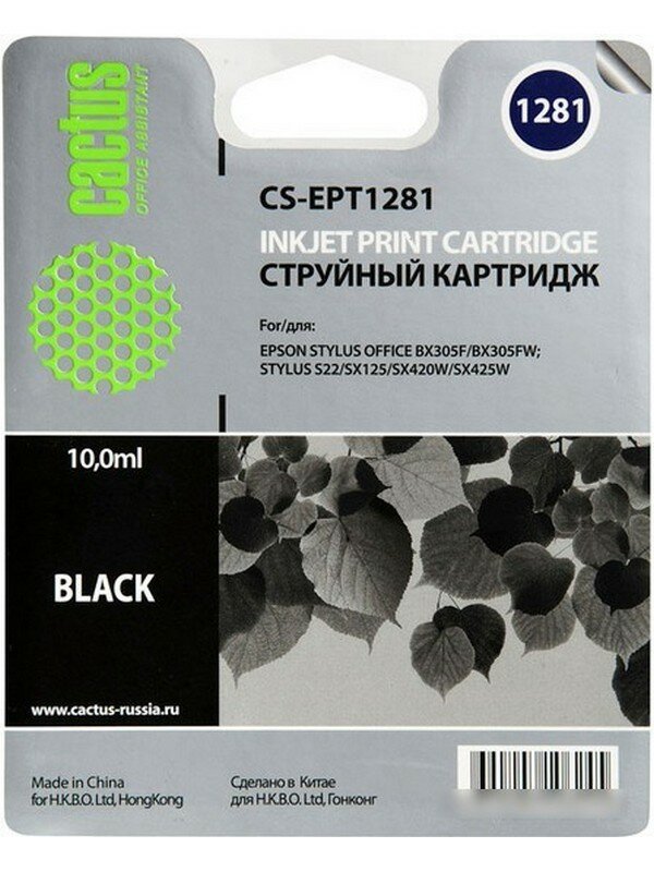 Картридж струйный Cactus CS-EPT1281 черный для Epson Stylus S22/S125/SX420/SX425/Office BX305 (10мл) CS-EPT1281