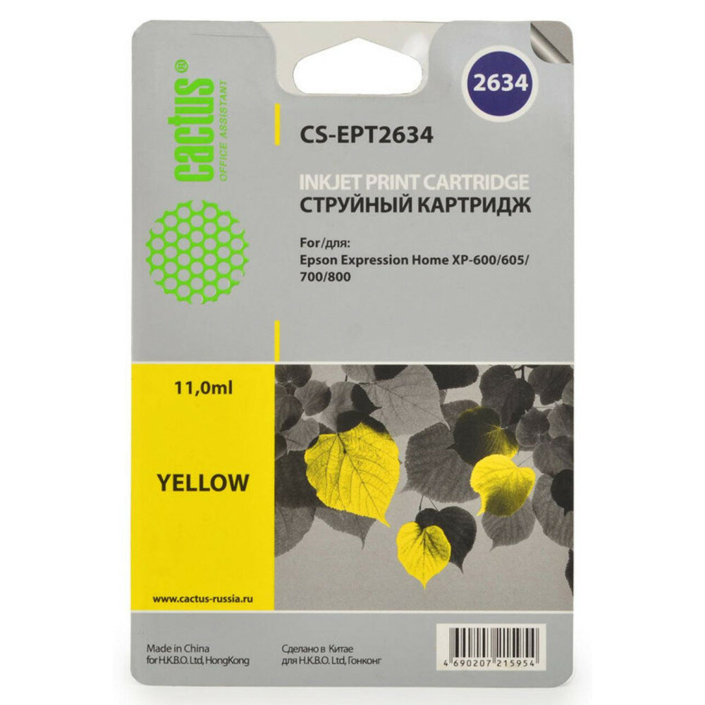 Картридж CACTUS CS-EPT2634 12.4ML YELLOW Expression Home XP-600/605/700/800