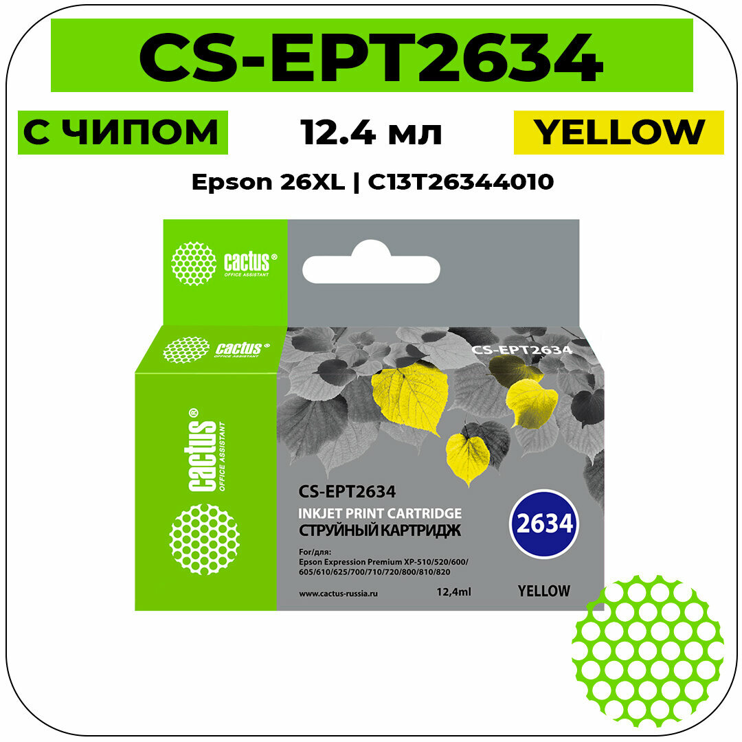 Картридж Cactus CS-EPT2634, 26XL, желтый / CS-EPT2634