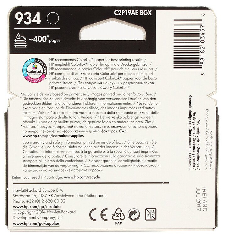 Hp Расходные материалы C2P19AE Картридж 934, Black