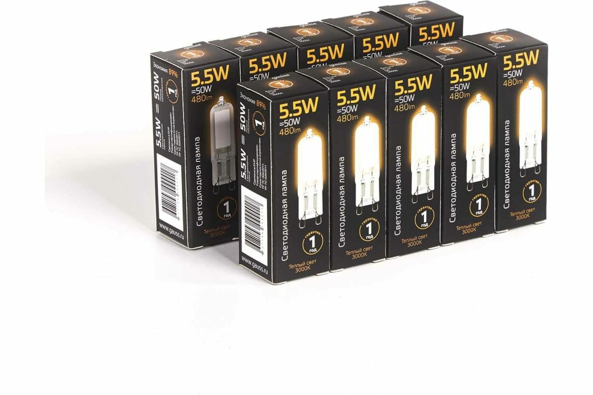 107809105 Лампа Gauss LED G9 AC220-240V 5.5W 480lm 3000K Glass 1/10/200