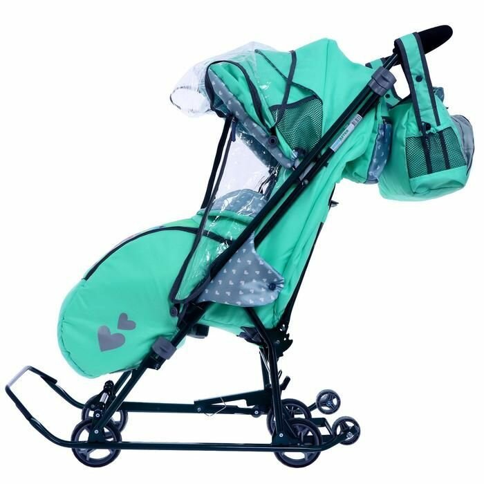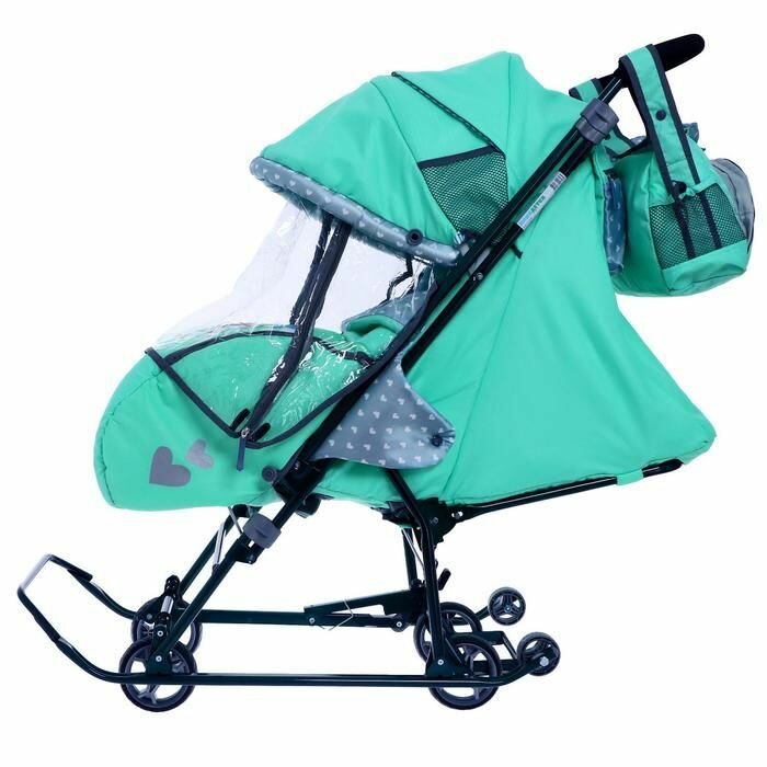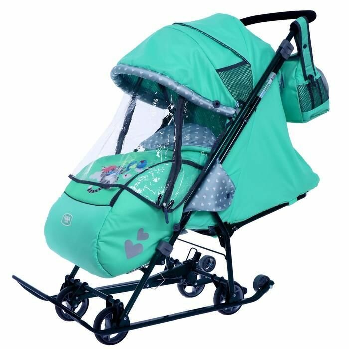Санки-коляска Nika "Наши детки 5-2", мятный, складной каркас, ветрозащитный тент (НДТ5-2|3)