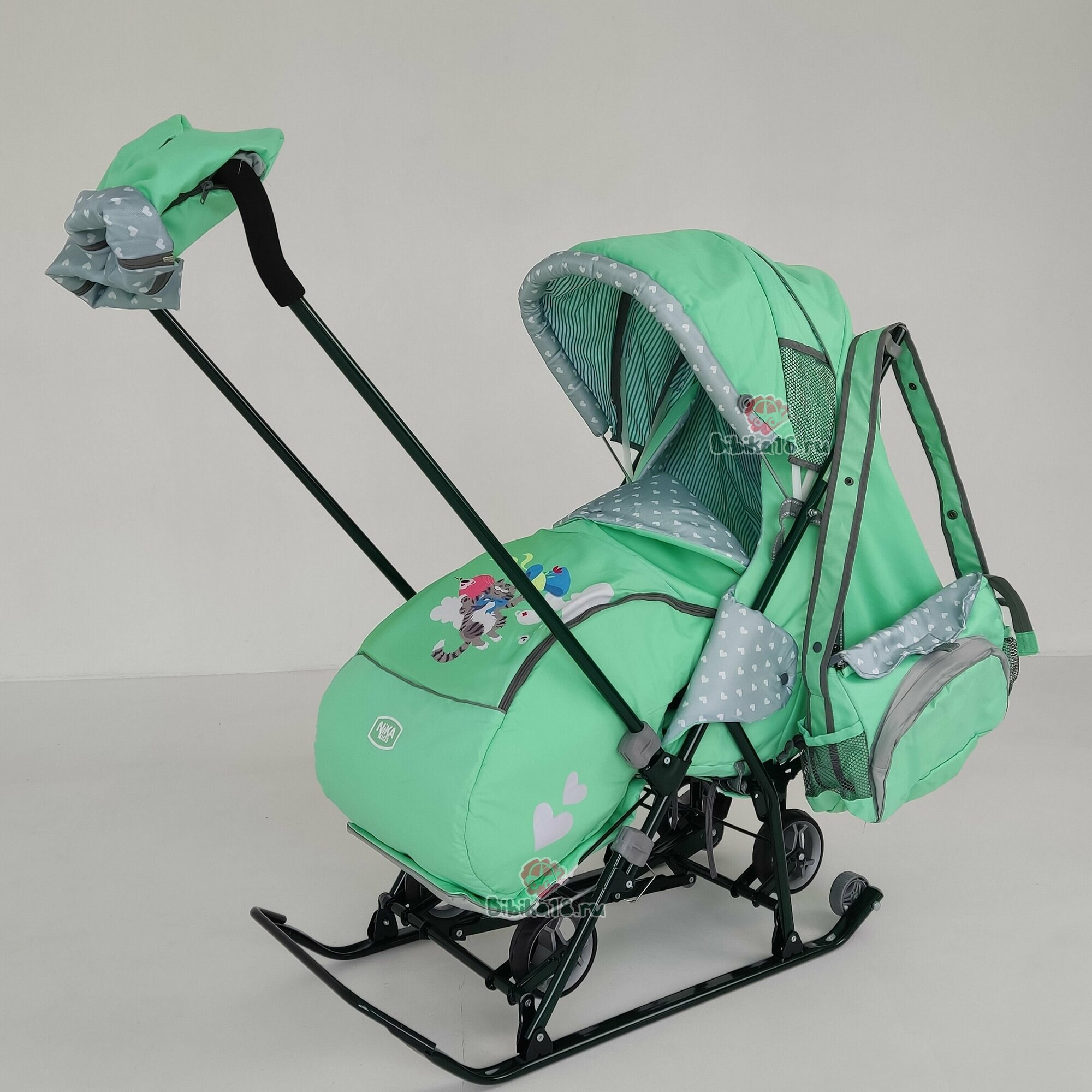 Санки-коляска Ника Наши Детки 5-2 с котенком мятный НДТ5-2/3