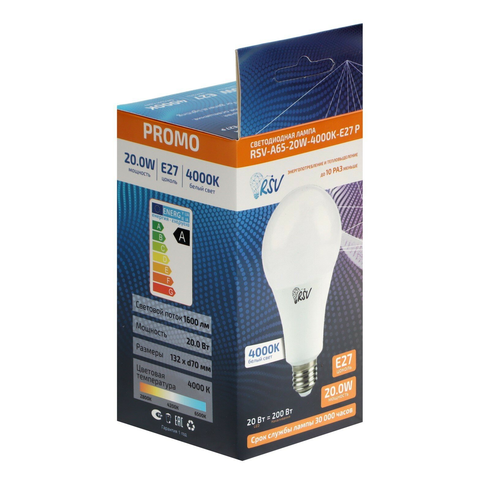 RSV Светодиодная лампа RSV-A65-20W-4000K-E27 P 100343 интересное: