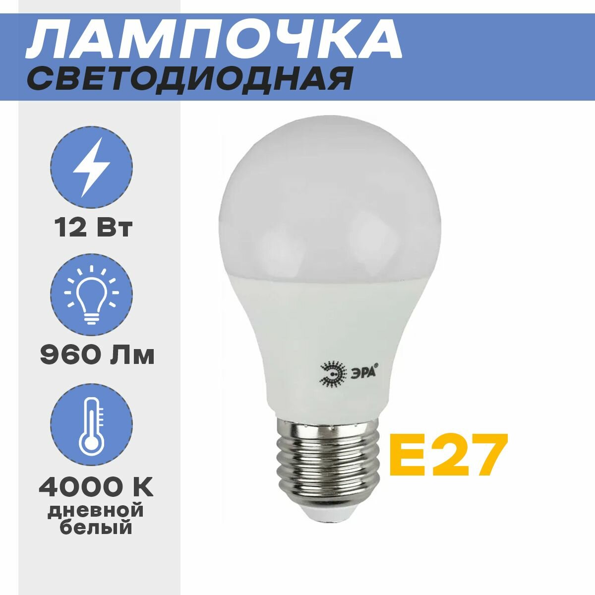 Лампа светодиодная ЭРА Б0049636, E27, A60, 12 Вт, 4000 К