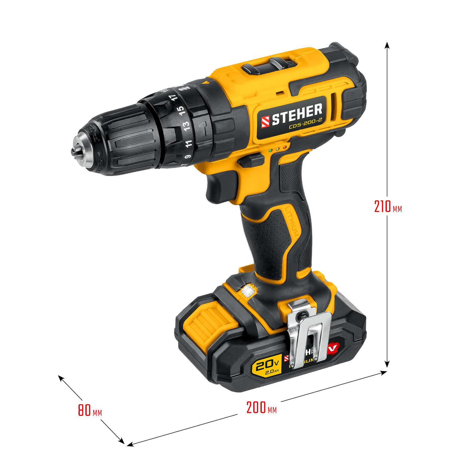 Ударная дрель-шуруповерт, CDS-200-2 STEHER 20 В, 2 АКБ (2Ач), в кейсе