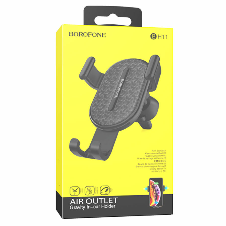 Держатель автомобильный Borofone BH11, зажим, в дефлектор, черный, 1 шт