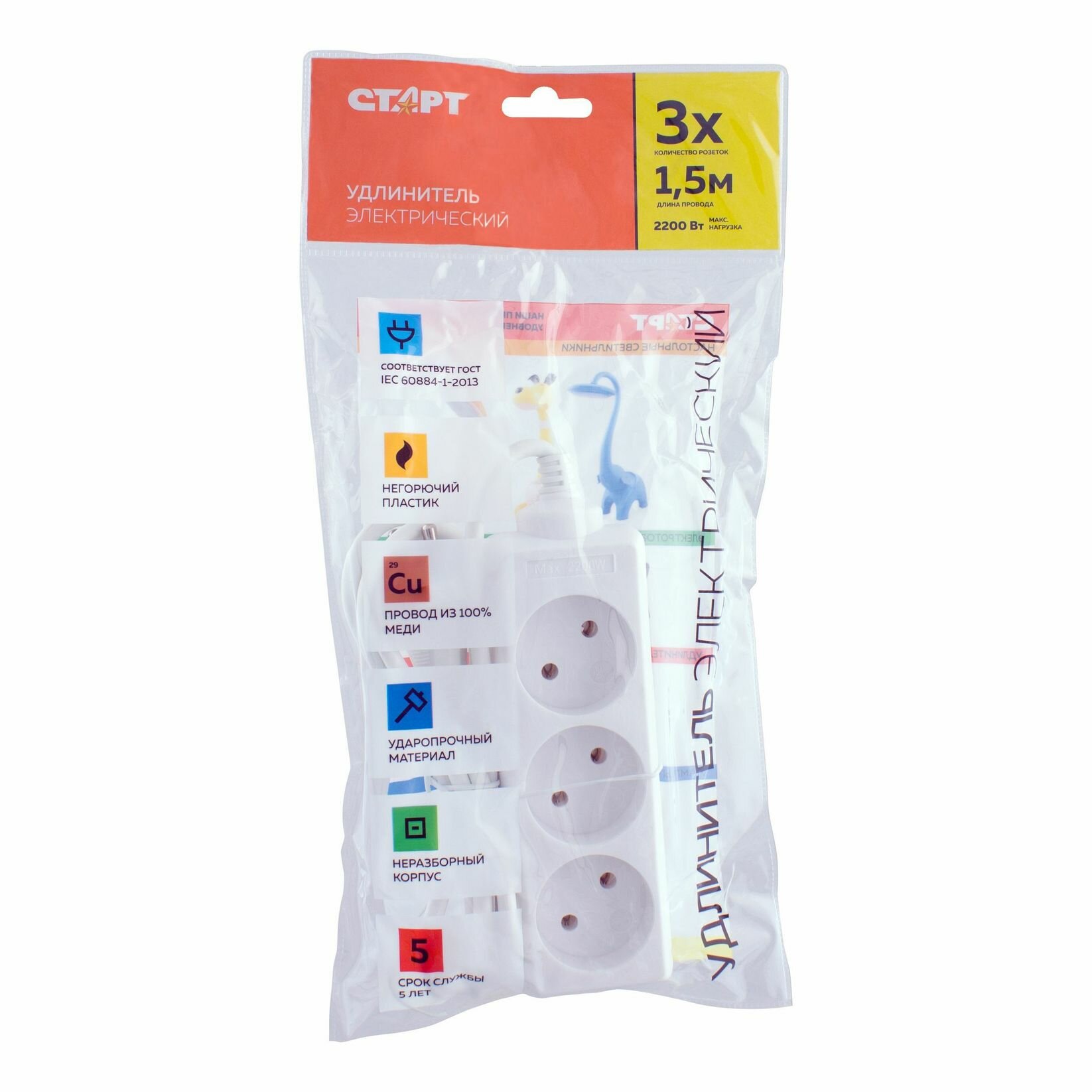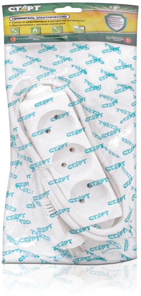 Купить Старт 4607175852678 Удлинитель 3 розетки. С У S 3x1. Длина провода 1,5 м. Без заземления.