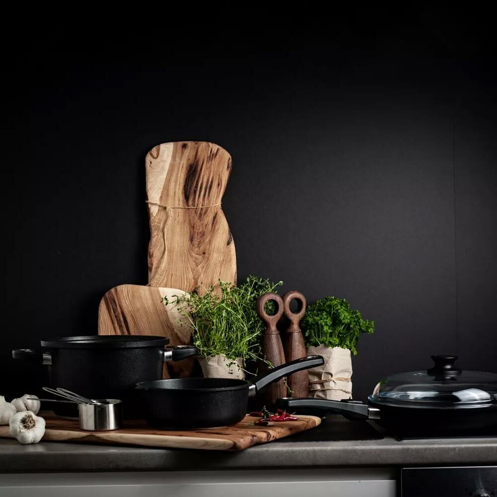 Алюминиевая сковорода глубокая с антипригарным покрытием и фиксированной ручкой для индукционных плит, 26 см, 3.3 л, черный, серия Сковороды и воки, AMT Gastroguss, AMT I-726FIX