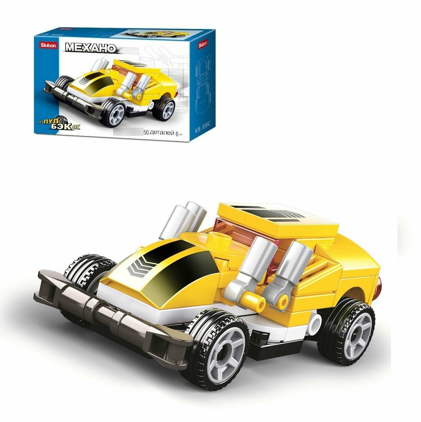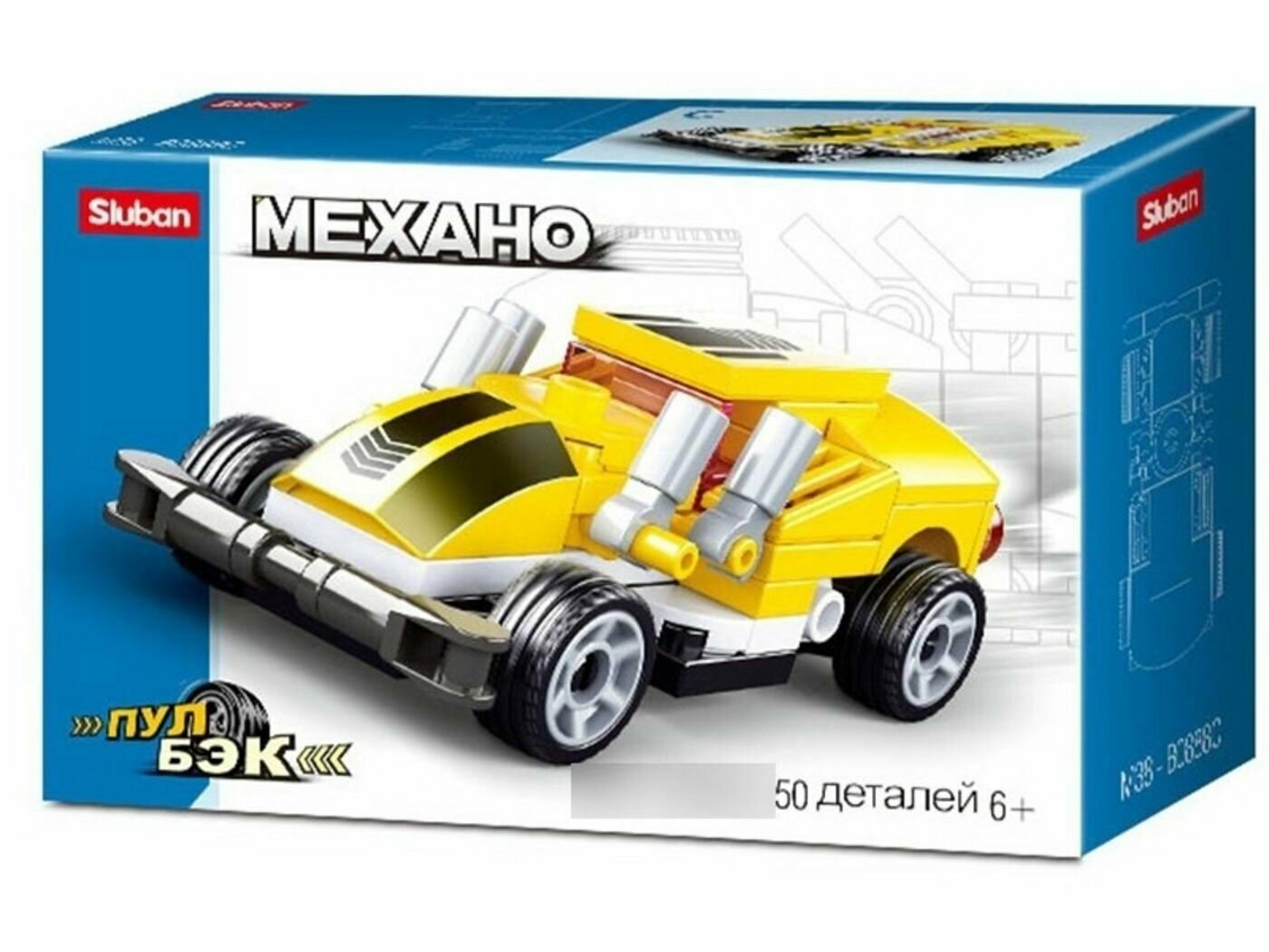 Конструктор Sluban серия "Механо", Гоночная машина, инерционная, желтая, 50 деталей (M38-B0888C)