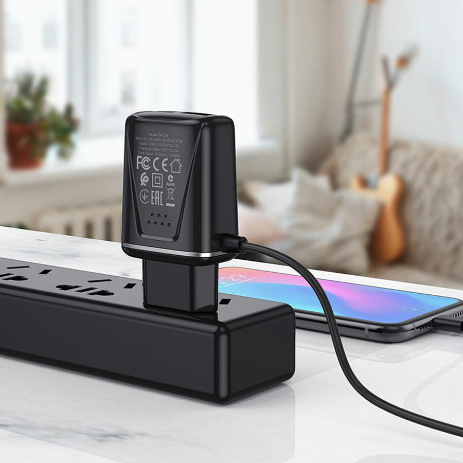 Зарядное устройство Borofone BA50A с кабелем Apple Lightning Black