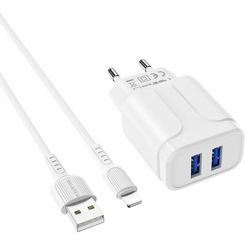 Сетевое зарядное устройство (СЗУ) Borofone BA37A (2 USB) + кабель Lightning, 2.4 А, белый