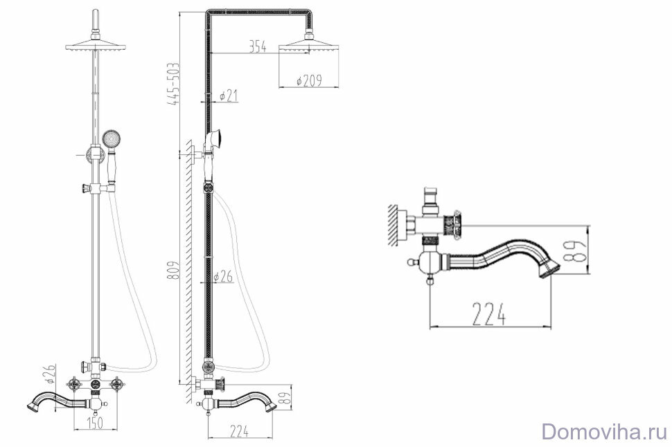 | Дополнительная информация | высота стойки для душа: 1260 мм; диаметр верхнего душа: 209 мм |