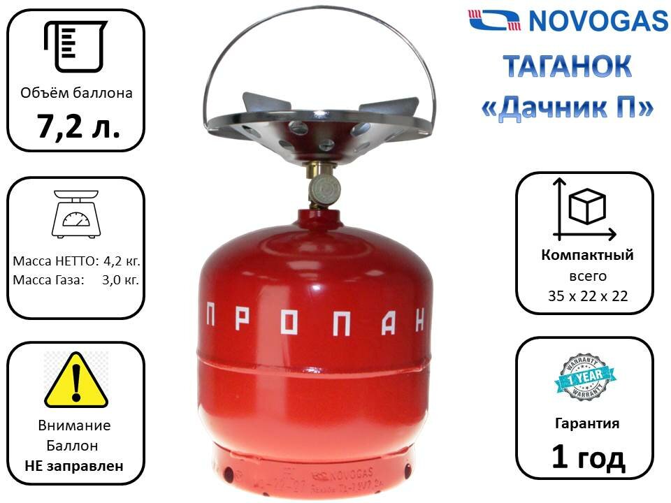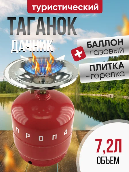 Таганок "Дачник" (комплект туристический: баллон новый газовый 7,2л + плитка-горелка), НЗГА, Беларусь