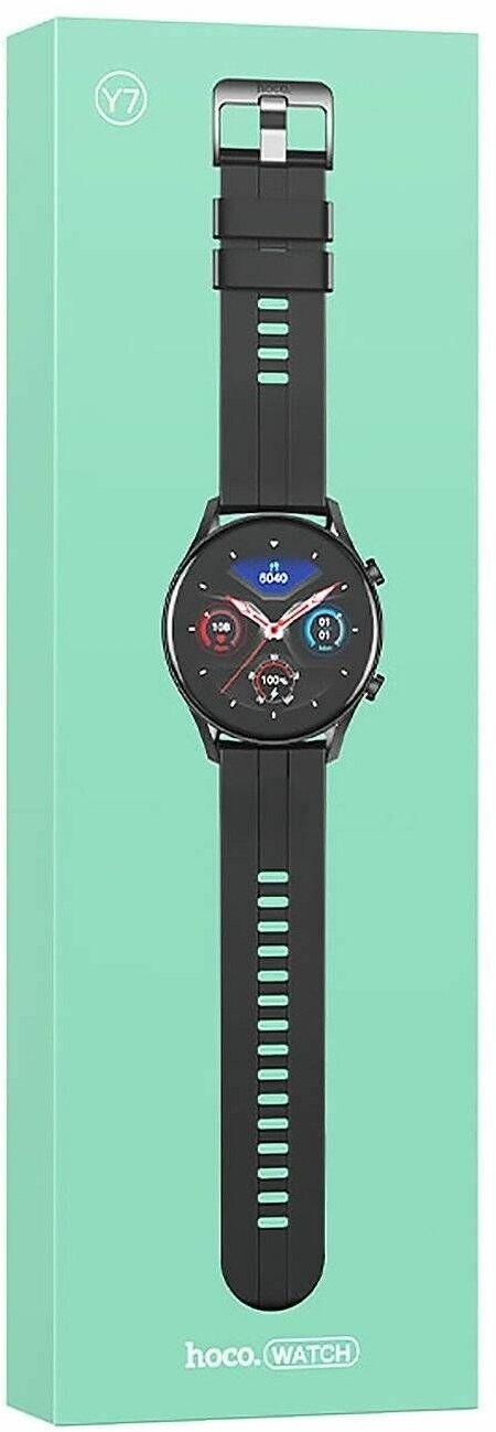 Купить Смарт-часы Hoco Y7, 1.32", 360x360, IP68, BT5.0, 330 мАч, будильник, шагомер, чёрные