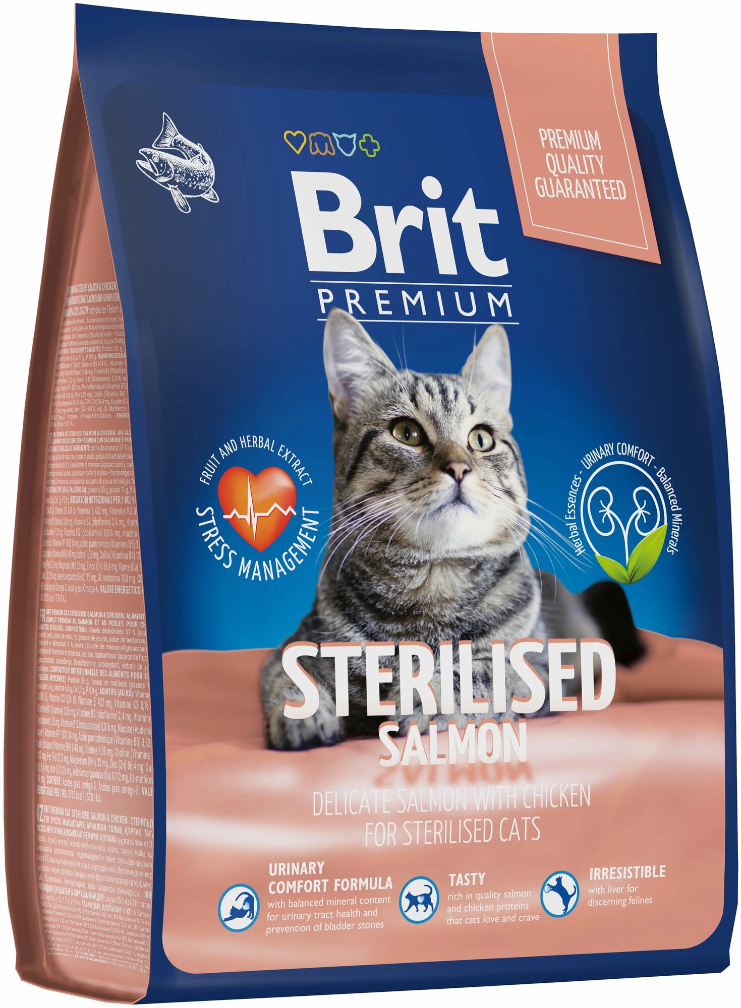 Сухой корм BRIT PREMIUM CAT STERILISED SALMON & CHICKEN для взрослых кастрированных котов и стерилизованных кошек с лососем и курицей (2 кг)