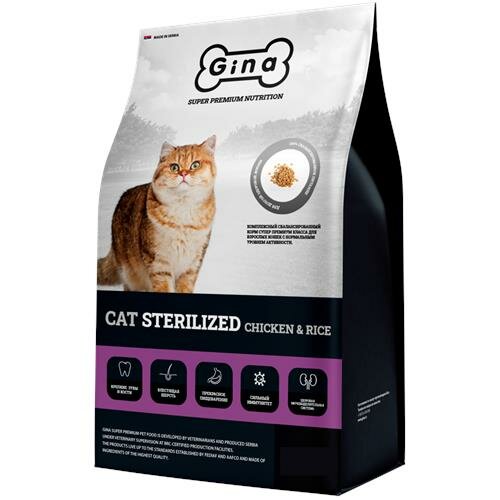 Купить Сухой корм GINA CAT STERILIZED CHIKEN & RICE с курицей и рисом для стерилизованных кошек, 7,5кг