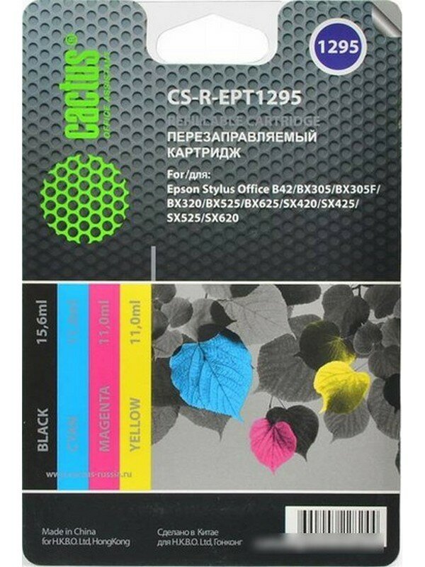 Картридж струйный Cactus CS-EPT1295 T1295 черный/голубой/желтый/пурпурный набор (45мл) для Epson Stylus Office B42/BX305/BX305F/BX320/BX525/BX625/SX420/SX425/SX525/SX620