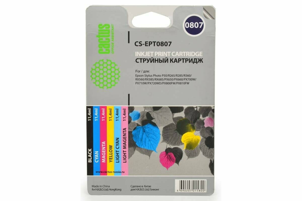 Картридж струйный Cactus CS-EPT0807 черный/желтый/голубой/пурпурный/светло-голубой/светло-пурпурный набор (68.4мл) для Epson St Ph P50