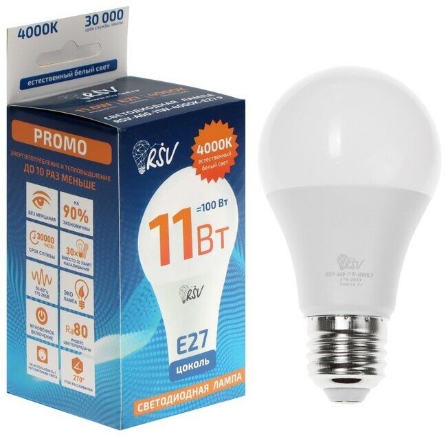 Светодиодная лампа RSV RSV-A60-11W-4000K-E27 P 100350 интересное: