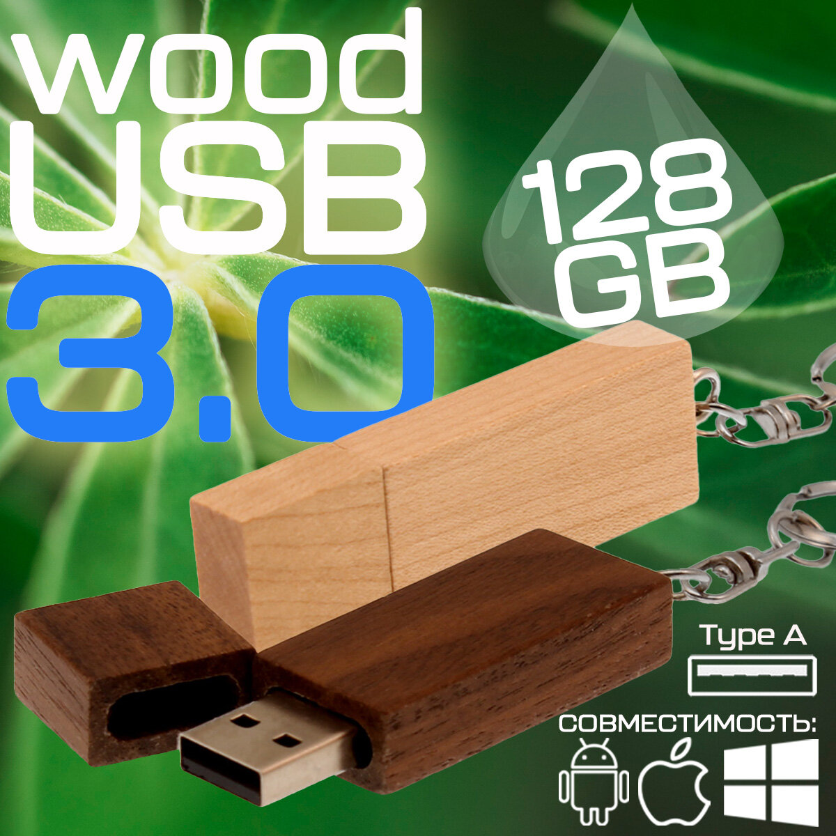 Прямоугольная деревянная флешка Woody с магнитным колпачком (128 Гб / GB USB 3.0 Белый/White Wood2 Флеш-карта Прямоугольник)