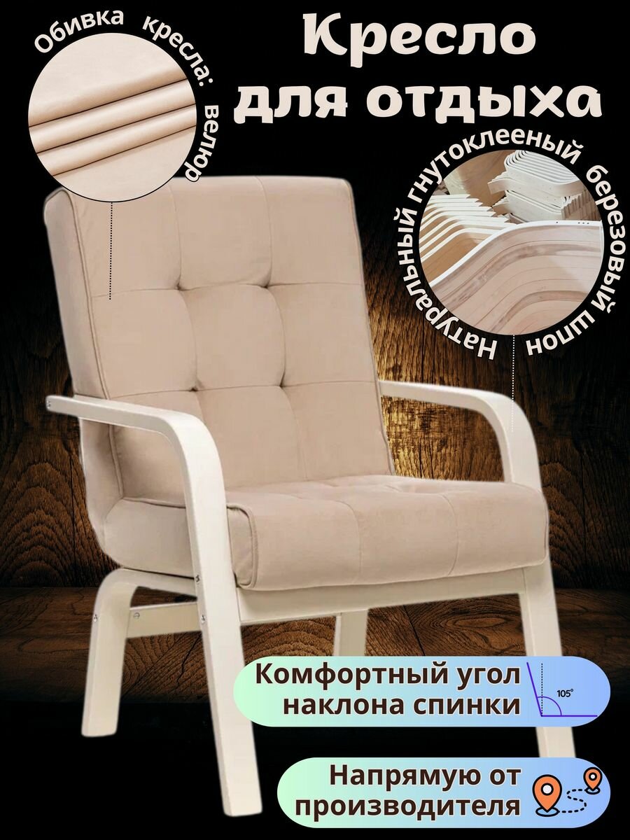 Кресло Leset Модена, Слоновая кость, ткань велюр V 18 бежевый, кант V 18