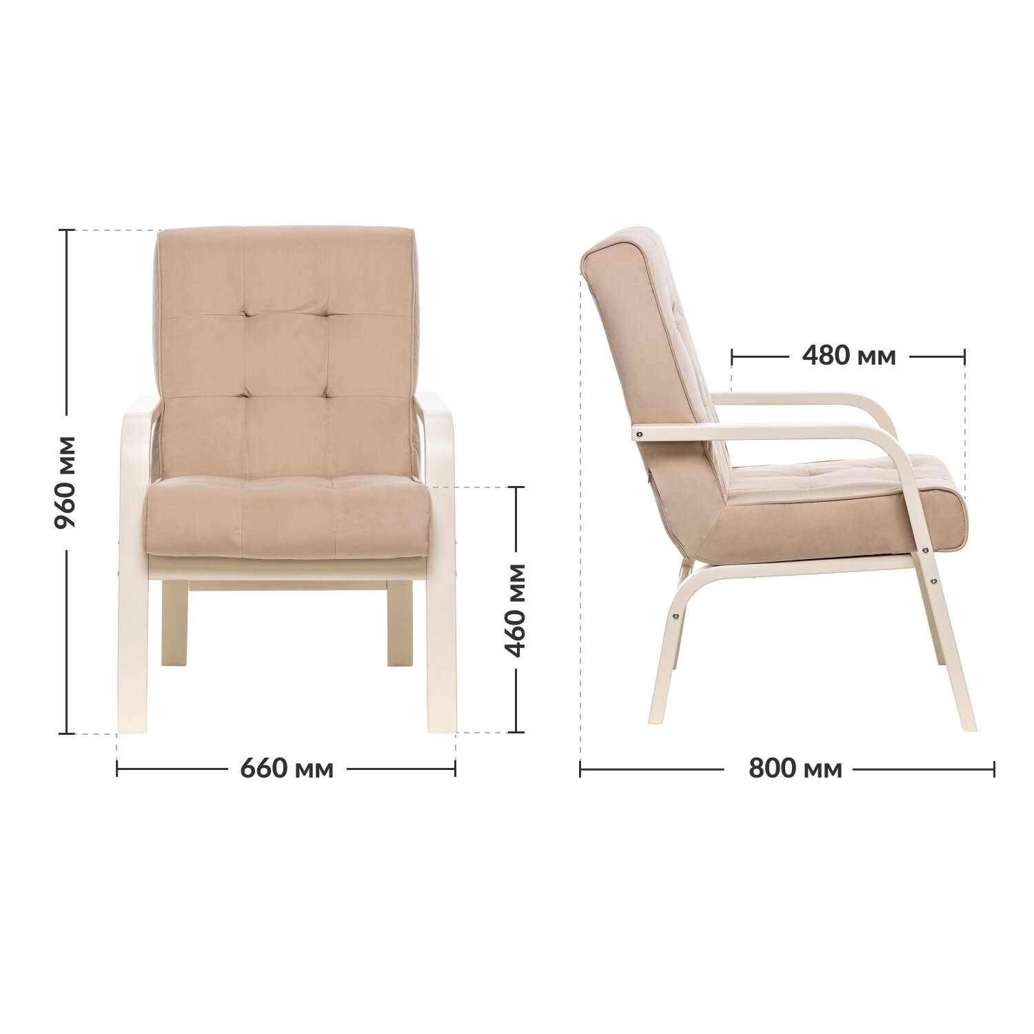 Кресло Модена, Слоновая кость, велюр V 18, кант V 18
