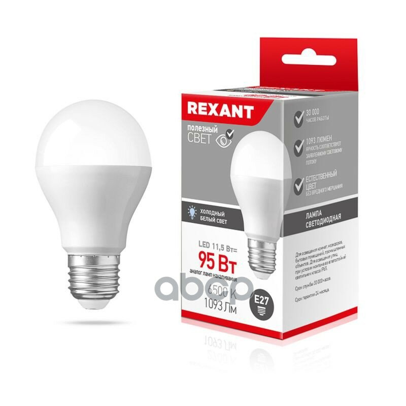 Светодиодная лампа REXANT Груша A60 11,5 Вт E27 1093 лм 6500 K холодный свет интересное: